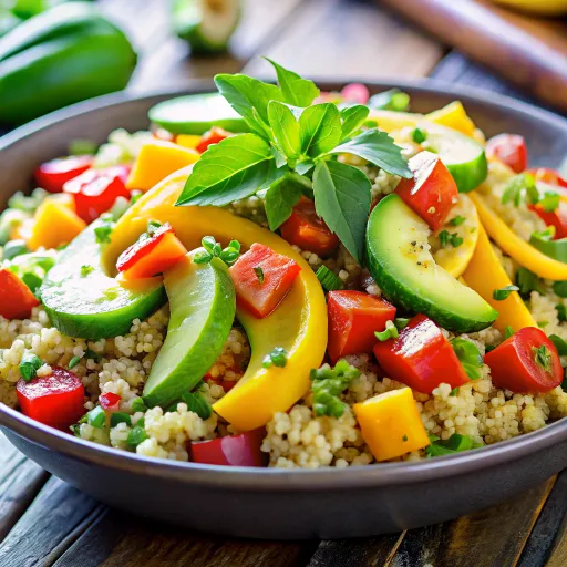 Aromatyczna komosa ryżowa połączona z pieczonymi warzywami korzennymi, przyprawiona świeżymi ziołami.
